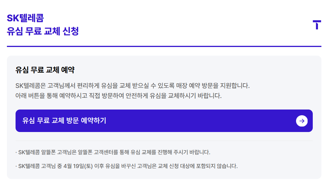 ✅ SKT 유심 무상 교체 신청 가능한 경우